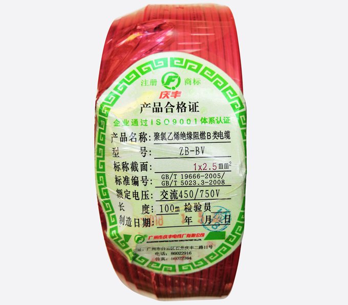 廣州慶豐電纜ZB-BVV阻燃B級家裝電線