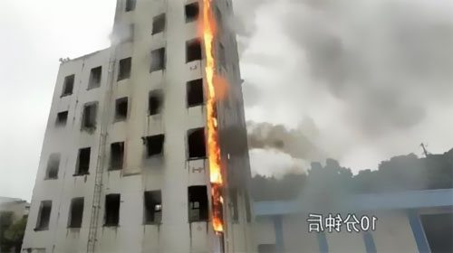 5分40秒,第四層電井電纜悉數(shù)燒起來(lái),由于煙囪效應(yīng)的原因,三層電井構(gòu)成的熱空氣由于密度較低,在電纜井內(nèi)得以往上活動(dòng),使高熱氣體不斷地在底部集合,使火勢(shì)更快的向上焚燒,不到10秒鐘的時(shí)刻第五層電井燃起大火。
